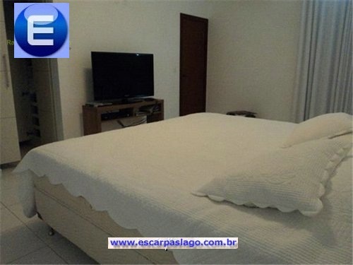 Casa para vender em Escarpas do Lago, de luxo, com excelente acabamento e linda vista definitiva e panorâmica para o Lago de Furnas. Possui 5 suítes, sendo 1 com ar condicionado e todas com armários. Possui banheiro lavabo, ampla sala de jantar e sala TV. Cozinha muito bem mobiliada e decorada. Área de lazer com piscina, churrasqueira, deck e banheiro.