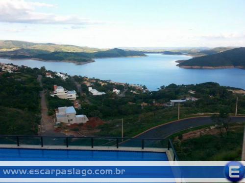 Casa nova, moderna, de luxo para vender em Escarpas do Lago, na parte alta, próxima do Mirante, com a melhor vista do lago de Furnas.