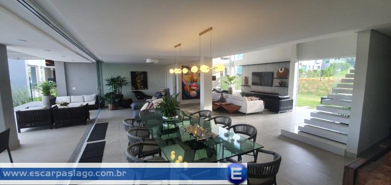 Casa localizada em Escarpas do Lago com 520m2, 6 suites amplas + 1 quarto de apoio, lote de 700m2 (20x35) 3 lavabos (social, lazer e serviço) piscina aquecida, cascata e iluminada, hidromassagem na varanda superior, casa completa, mto bem mobiliada e decorada |